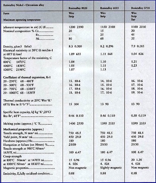 Range of Resistance Heating Alloys (ii) PHYSICAL AND MECHANICAL PROPERTIES